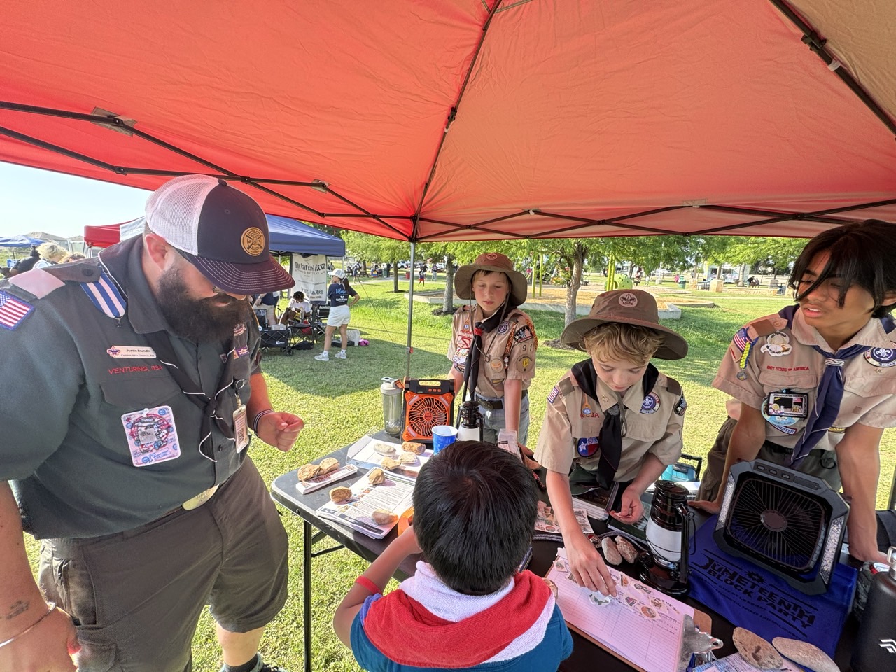 On Saturday, June 14, 2025, the City of Leander hosted its annual Juneteenth Block Party at Robin Bledsoe Park. With the theme “Still We Rise: Strength, Spirit, and Solidarity,” the event brought together families to enjoy music, local food, games, art, and community togetherness in celebration of emancipation and unity. Scouts and Scouters from the North Shore District were honored to lend a hand. Volunteers helped distribute rally towels, supported vendor and event logistics, and connected with community members at the North Shore District booth. Their goal was simple: to contribute where needed and share the values of Scouting through service and teamwork.