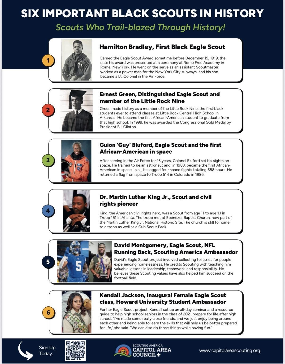 In addition, Scouters from the North Shore District hosted an informational booth that celebrated famous African American men and women who were part of Scouting. The booth sparked great conversations with attendees and helped connect Dr. King’s legacy with the long history of diversity, leadership, and service within the Scouting movement.