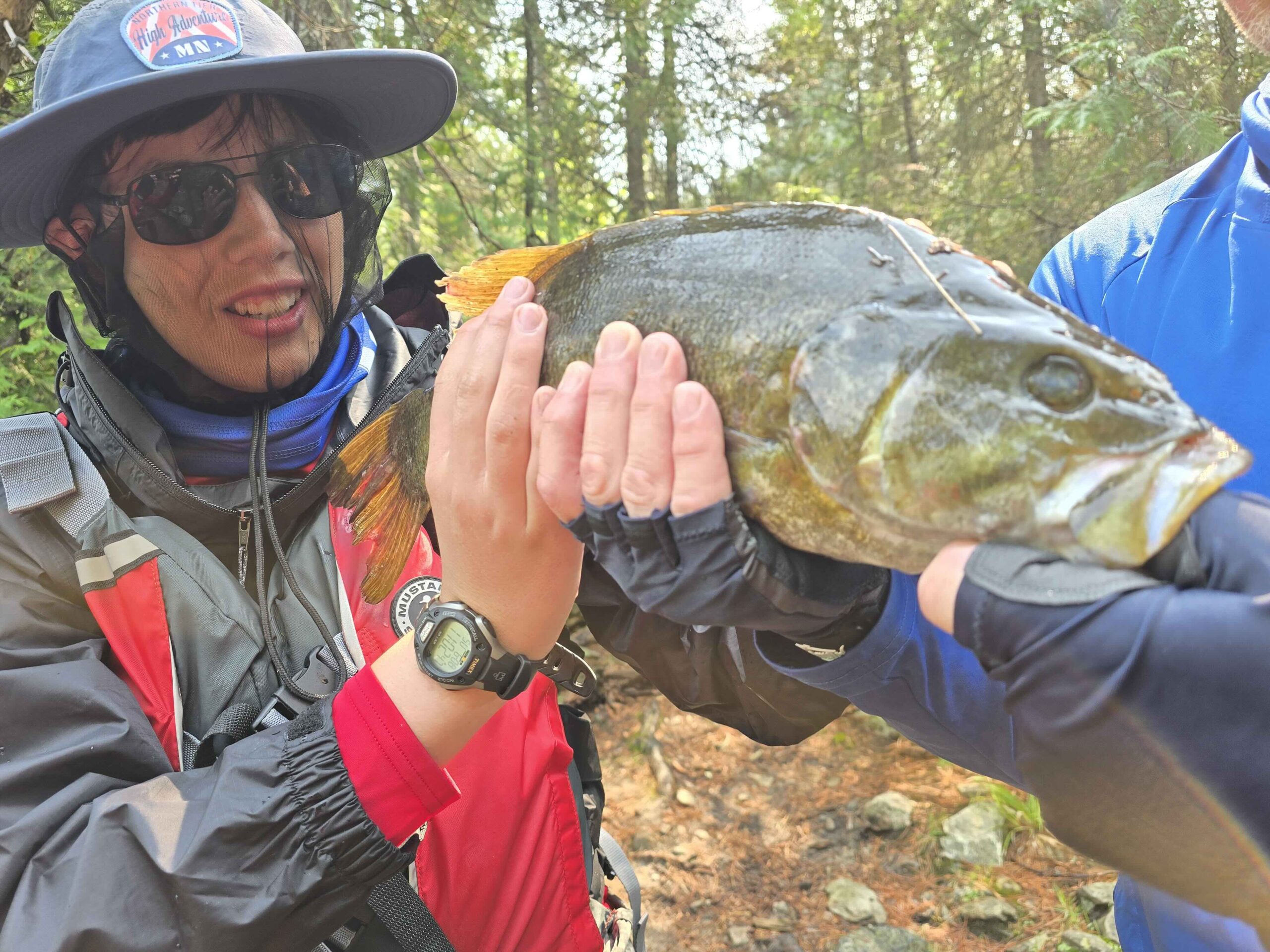 With surprising calm, Tobias (and let’s be honest, only Tobias) used our fishing net to gently capture the monster. Meanwhile, the rest of the group quickly completed the portage, now even more motivated than before.